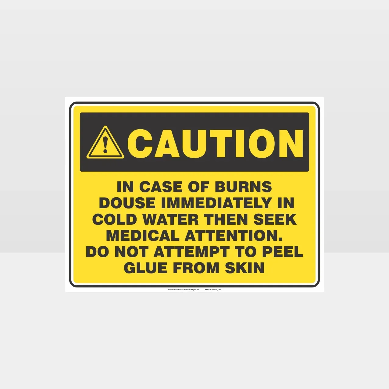“Caution In Case Of Burns Sign” lets people know that a danger exists so please be cautious and pay attention to the signs. Hazard signs are crucial for ensuring the health and safety of your staff and visitors to your workplace. Hazard Signs NZ supply a wide range of standard New Zealand Health & Safety signs and Caution notices for a wide range of applications. The “Caution In Case Of Burns Sign” is an important tool to help meet safety compliance and guidelines.
