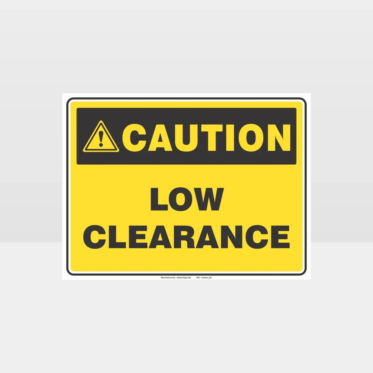 “Caution Low Clearance Sign” lets people know that a danger exists so please be cautious and pay attention to the signs. Hazard signs are crucial for ensuring the health and safety of your staff and visitors to your workplace. Hazard Signs NZ supply a wide range of standard New Zealand Health & Safety signs and Caution notices for a wide range of applications. The “Caution Low Clearance Sign” is an important tool to help meet safety compliance and guidelines.