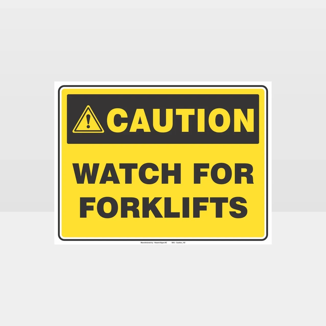 “Caution Watch For Forklifts Sign” lets people know that a danger exists so please be cautious and pay attention to the signs. Hazard signs are crucial for ensuring the health and safety of your staff and visitors to your workplace. Hazard Signs NZ supply a wide range of New Zealand Health & Safety signs and Caution notices for a wide range of applications. The “Caution Watch For Forklifts Sign” is an important tool to help meet safety compliance and guidelines.
