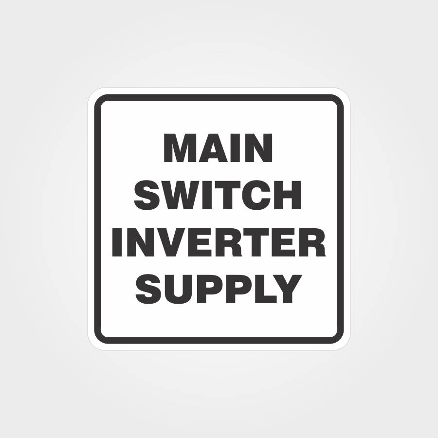 Main Switch Inverter Supply Labels are used in solar PV installations to clearly identify the inverter supply isolation point. These labels assist electricians, inspectors, and emergency responders by clearly marking the inverter supply main switch within the electrical switchboard.