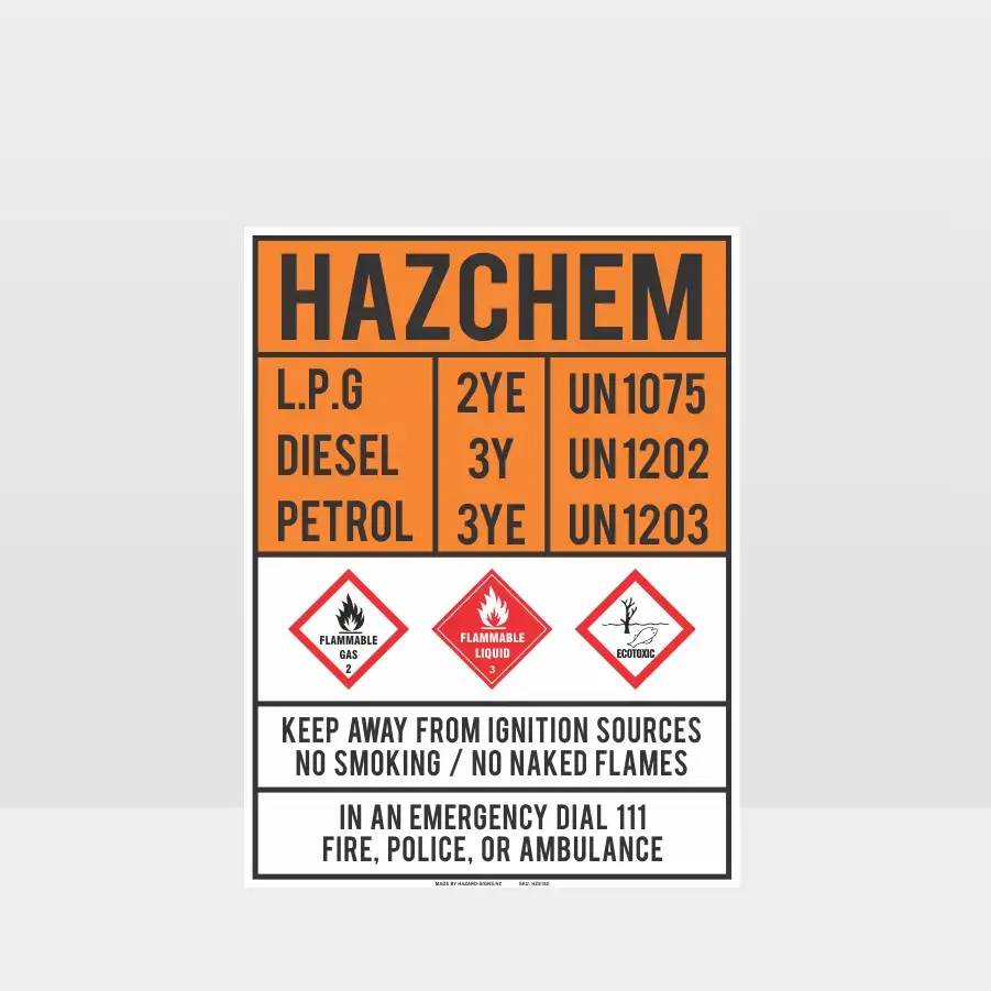 HAZCHEM Sign – LPG DIESEL PETROL HAZCHEM Sign
