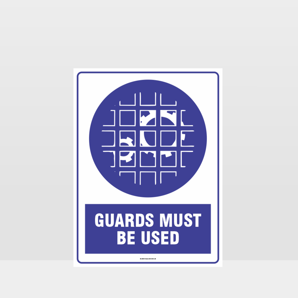 Mandatory Guards Must Be Used Sign, Mandatory or Blue safety signs as they are often referred as, are recognised by a white pictogram surrounded by a blue background and informs employees & visitors what actions must be taken to remain safe.