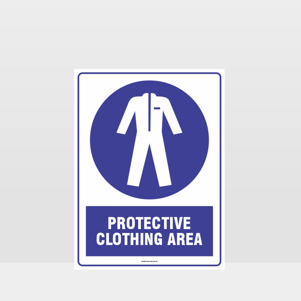 Mandatory Protective Clothing Area Sign – By displaying the ‘Protective Clothing Area Sign’ encourages staff and or visitors at the workplace to follow the safety protocols laid out. Health and safety at the workplace can be maintained in part by using the appropriate warning signals in the places that need it. Such safety factors may be for rules on fire code for emergency exits or fire appliances, or for keeping places free from debris that would otherwise cause an accident.