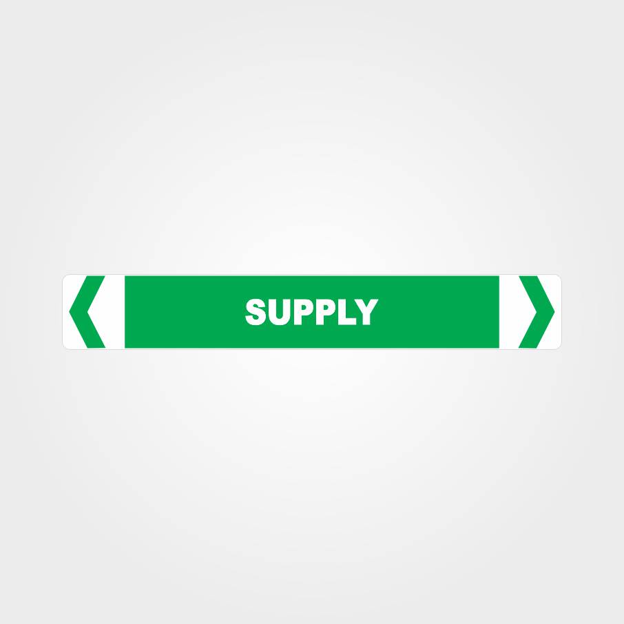 This green-coloured Supply Water Pipe Marker indicates what kind of liquid flows within the pipe.