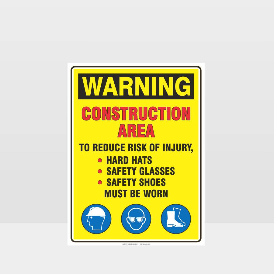 The Warning Sign – “Construction Area. To Reduce Risk of Injury, Hard Hats, Safety Glasses, Safety Shoes Must Be Worn” is a critical safety tool for construction sites, where hazardous activities and potential risks are common. Its significance lies in ensuring that proper personal protective equipment (PPE) is used to prevent injuries. Here are the key reasons for its importance: